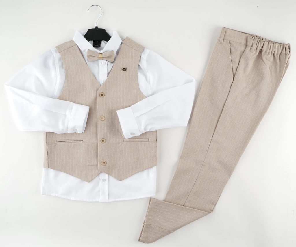 ÇİZGİLİ YELEKLİ TAKIM TAKIM İÇERİĞİ PAPYON PANTOLON GÖMLEK VE CEKET GÖĞÜS ROZETİ ÜRÜN GAYET KALİTELİ VE RAHATTIR YIKAMA TALİMATLARINA UYUN VE CEKETİ KURU TEMİZLEME İLE TEMİZLETİN İMALATTAN SİZ DEĞERLİ MÜŞTERİLERİMİZE ÖZENLE VE GÜVENLE HİZMET ETMEKTEN MEMNUNİYET DUYARIZ NOT : ALIRKEN 1 BEDEN BÜYÜK ALIN